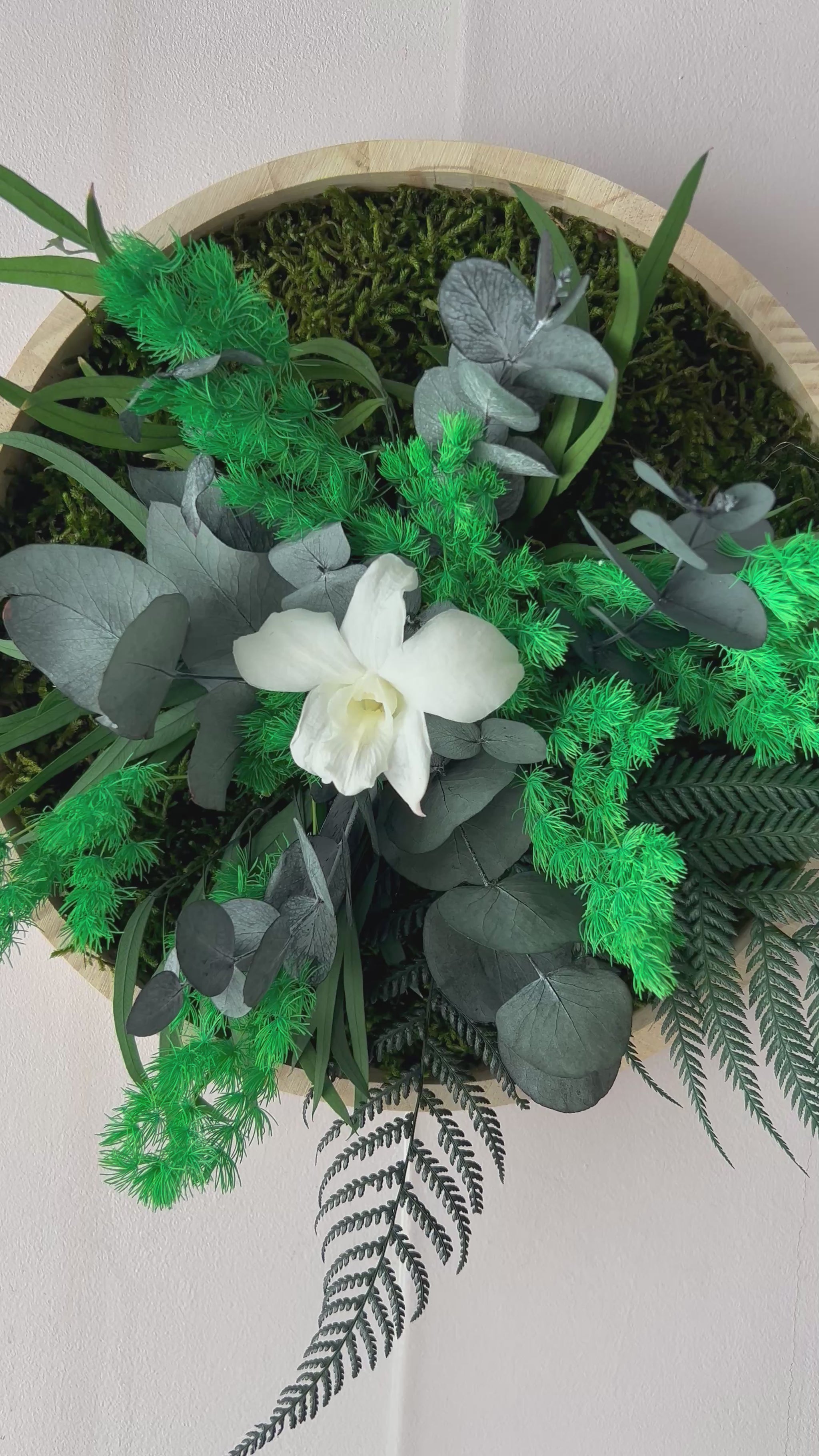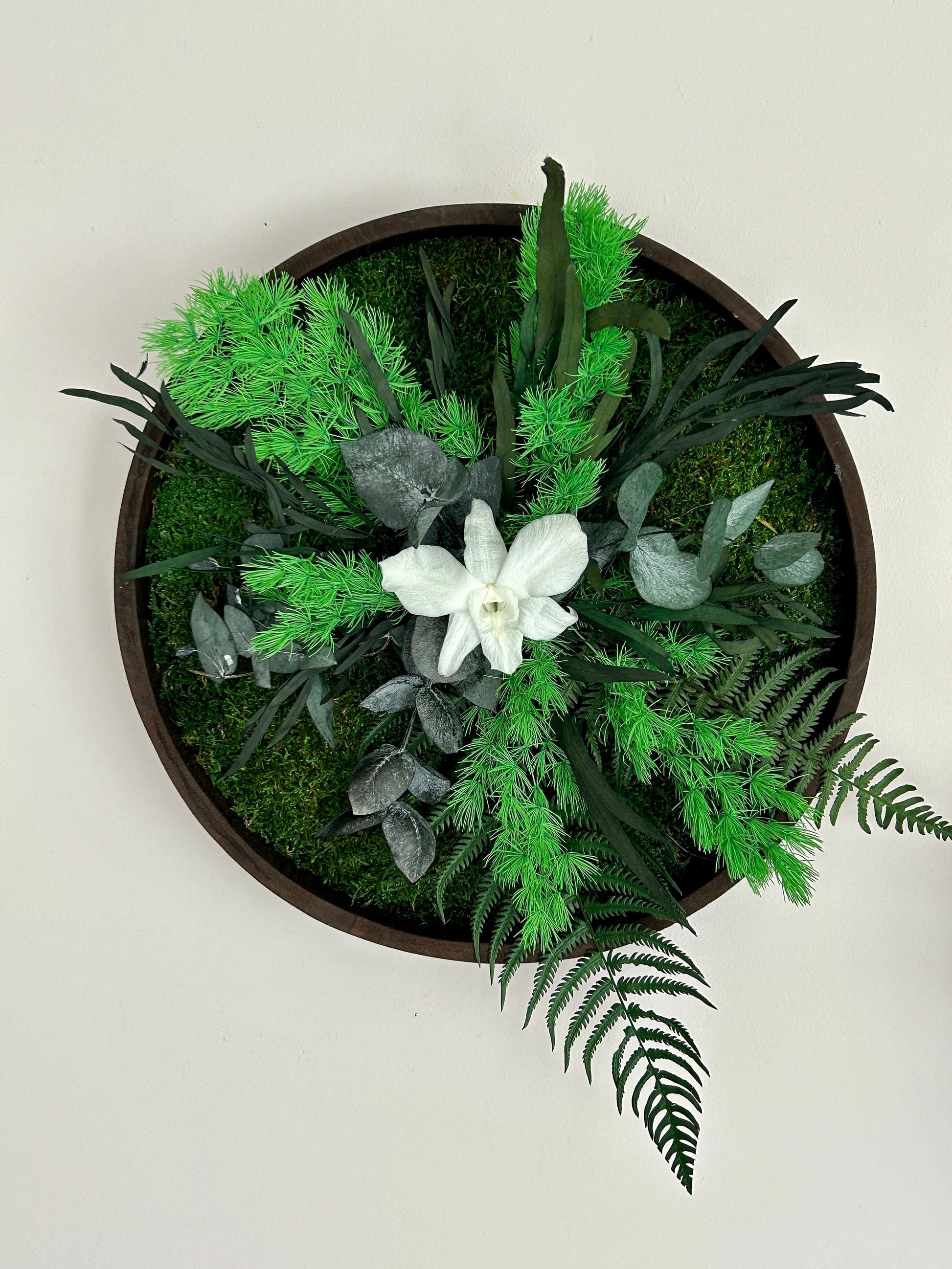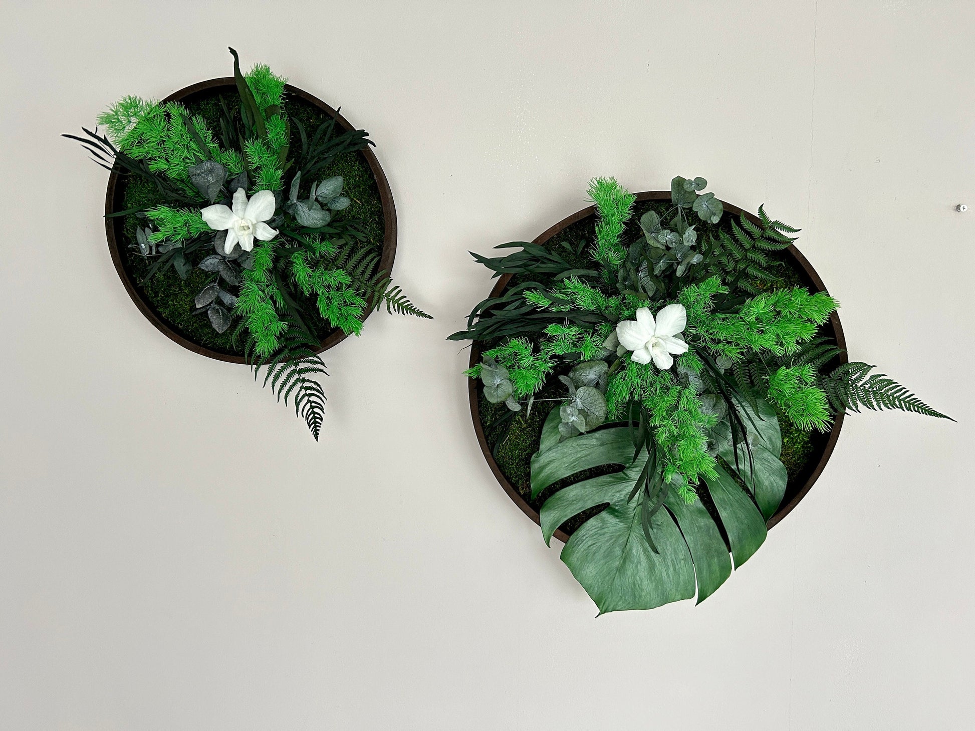 Apportez une touche d’élégance et de nature à votre intérieur avec ces cadres ronds en végétaux stabilisés, réalisés à la main dans notre atelier Verdura Diamond.